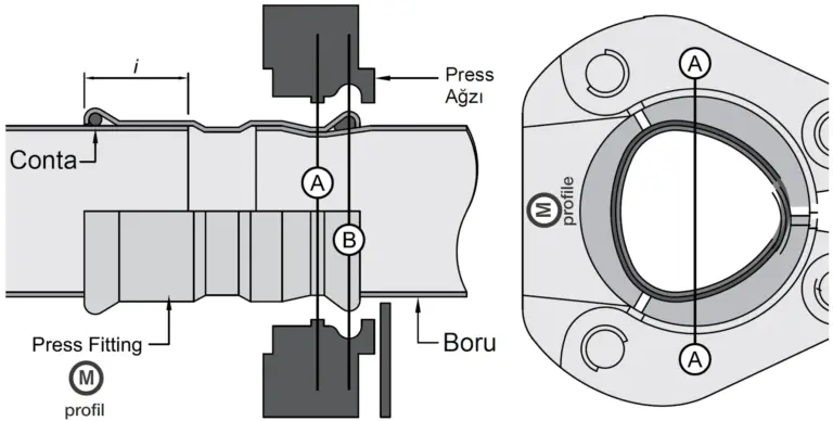 Pres Bağlantı Elemanları: Dirsek, Te, Manşon, Redüksiyon ve Rakor seçenekleri.